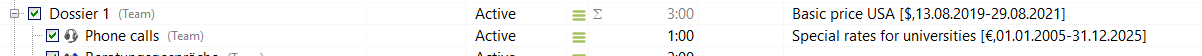 Your subprojects will react differently depending on whether you have stored a separate price list for the respective subproject or not. Here are two examples.