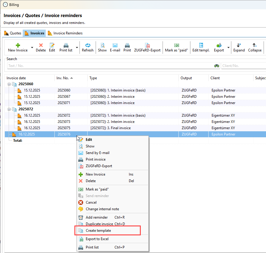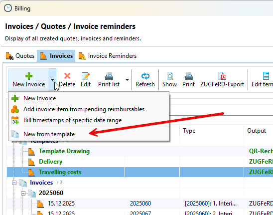 You can now create a new invoice based on this template.