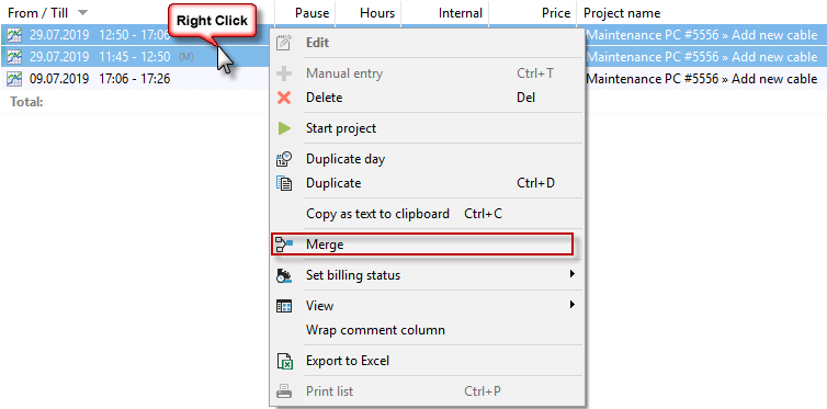 Even if the individual stamps have gaps, you can summarize them. You will then be asked whether you want to accept the gaps and extend the duration of the project, or whether you want to remove the gaps and extend the duration of the working time on the project.