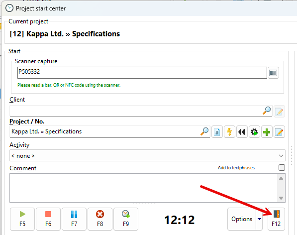 An employee records the time spent on a project or activity. When they have finished their work, they press F12 to log out of the system.