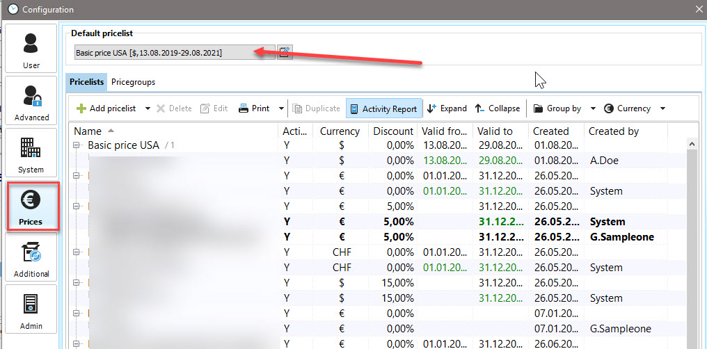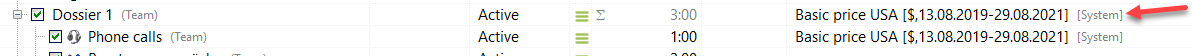 In the Project Manager, this is indicated by [System] after the price list.