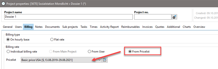 Your subprojects will react differently depending on whether you have stored a separate price list for the respective subproject or not. Here are two examples.