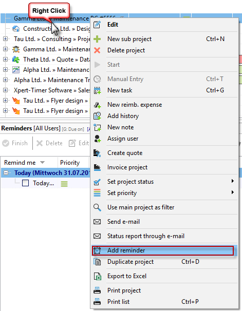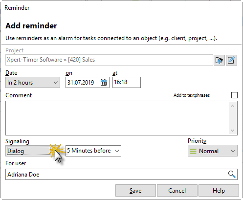 The easiest way to create a new reminder is to drag the object to the reminder area or reminder dialog.