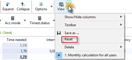 You can reset filter and grouping settings by clicking on the "View" button and selecting the "Reset" option.