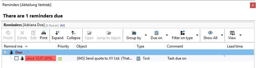 In the configuration under "Users" -> Reminders, you can set the query interval for your reminders. There you can also decide whether you want to display your due reminders when you start Xpert-Timer.