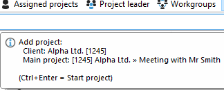 In quick entry, the task refers to the project selected in the Project Manager. The recipient As soon as you place the cursor in the quick entry area, an info dialog opens, telling you exactly which project the task is being created for.