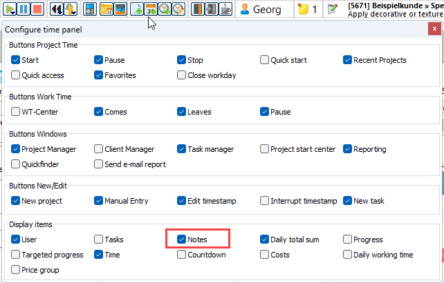 Right-click on one of the buttons to open the configuration. Then display the "Notes" area.