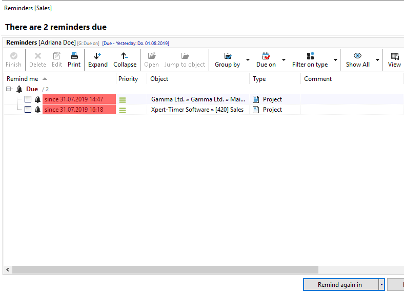 << Click to Display Table of Contents >> Navigation: Xpert-Timer Manual > Task list > Reminder function for open tasks |