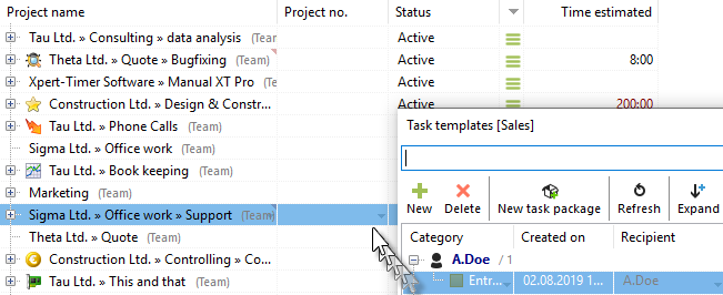 Select the "Window" menu item to access the "Task templates." These templates allow you to save individual tasks as templates or create task packages, which you can then assign to different projects using drag & drop. This means you don't have to create each task individually for the same processes in each project.